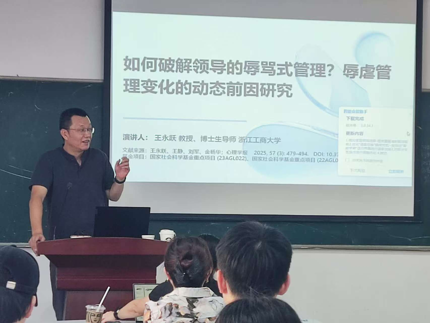 应浙江理工大学理学院心理学系邀请,浙江工商大学工商管理学院教授、博士生导师、浙江省中青年学科带头人王永跃于10月9日来校,为心理学系师生作了题为“如何破解领导的辱骂式管理?一个辱虐管理变化的动态前因研究”的学术报告。
