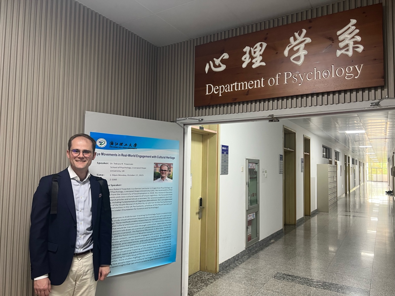 应浙江理工大学理学院心理学系邀请,英国利物浦赫普大学(Liverpool Hope University)心理学院高级讲师、博士生导师Tobiasz Trawinski博士于10月27日来校,为心理学系师生作了题为“The impact of social attitudes on attention allocation”的学术报告。